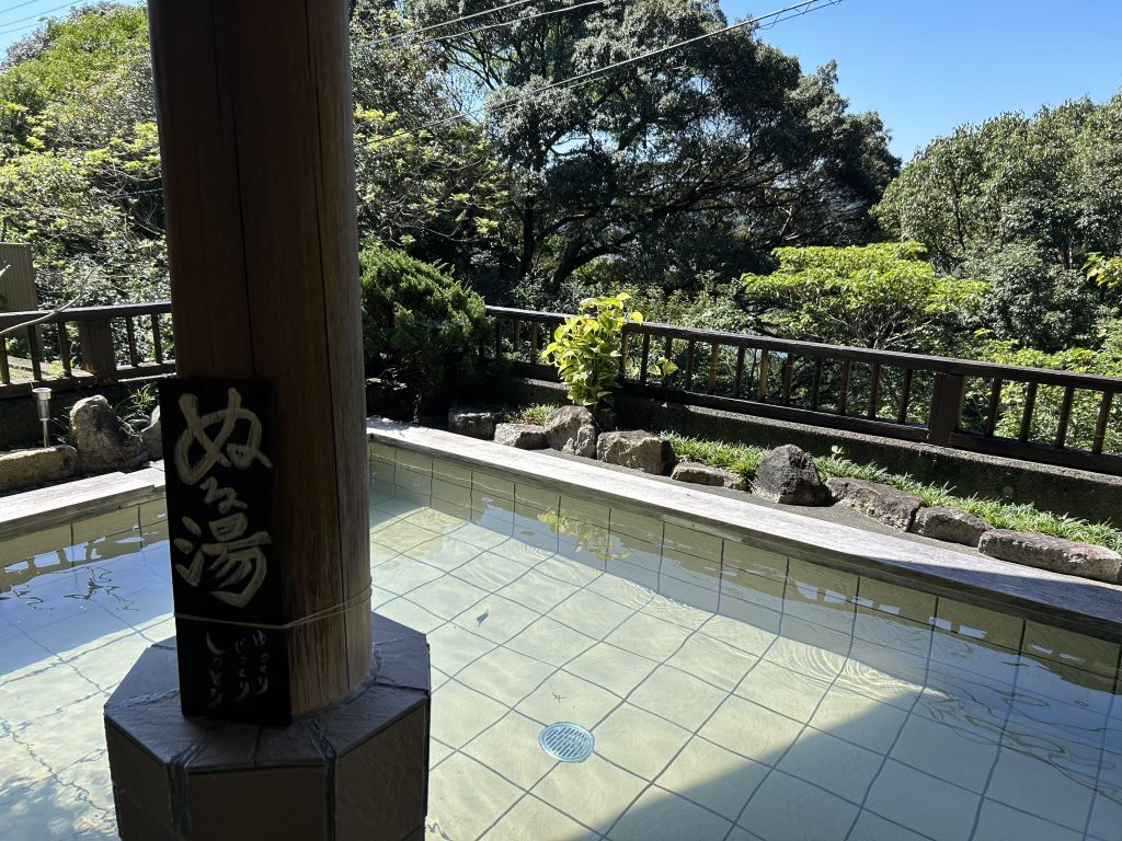 温泉を楽しむというより、城山の頂上の一軒宿故に周りの目を気にすることなく自然との一体感、開放感をを味わっていだくという感じです。
