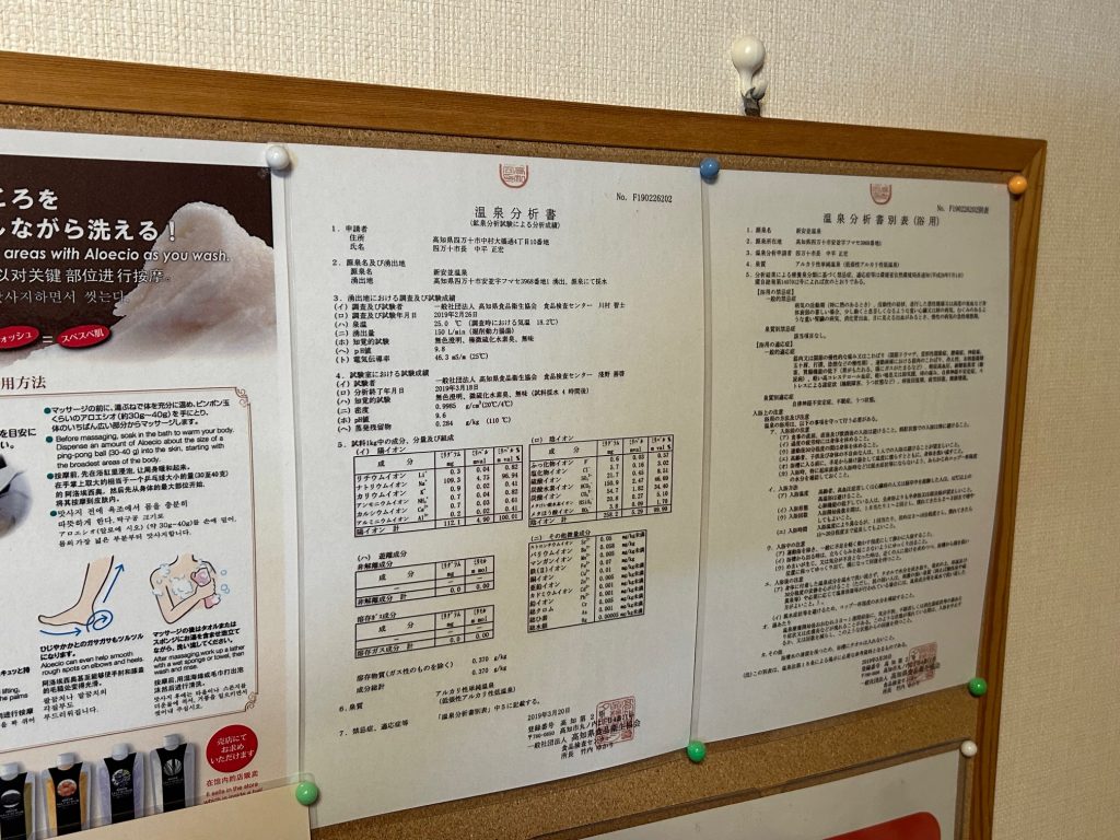 当庵は四万十市所有の〈新安並温泉〉を引いていますが、脱衣所に掲示されている温泉分析表もチェックされ、「pH値9,8という温泉には今まであまり出会ったことがなかったです」とも。