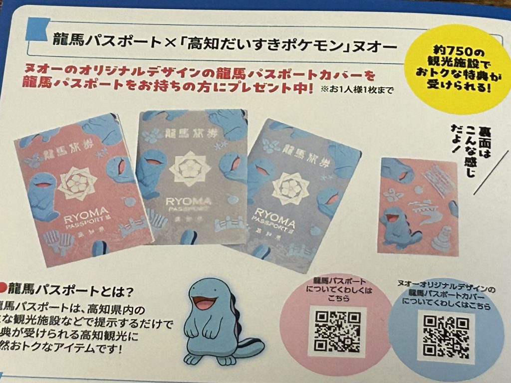また、龍馬パスポートをお持ちの方に、ヌオーのオリジナルデザインのパスポートカバーをもれなくプレゼント中。